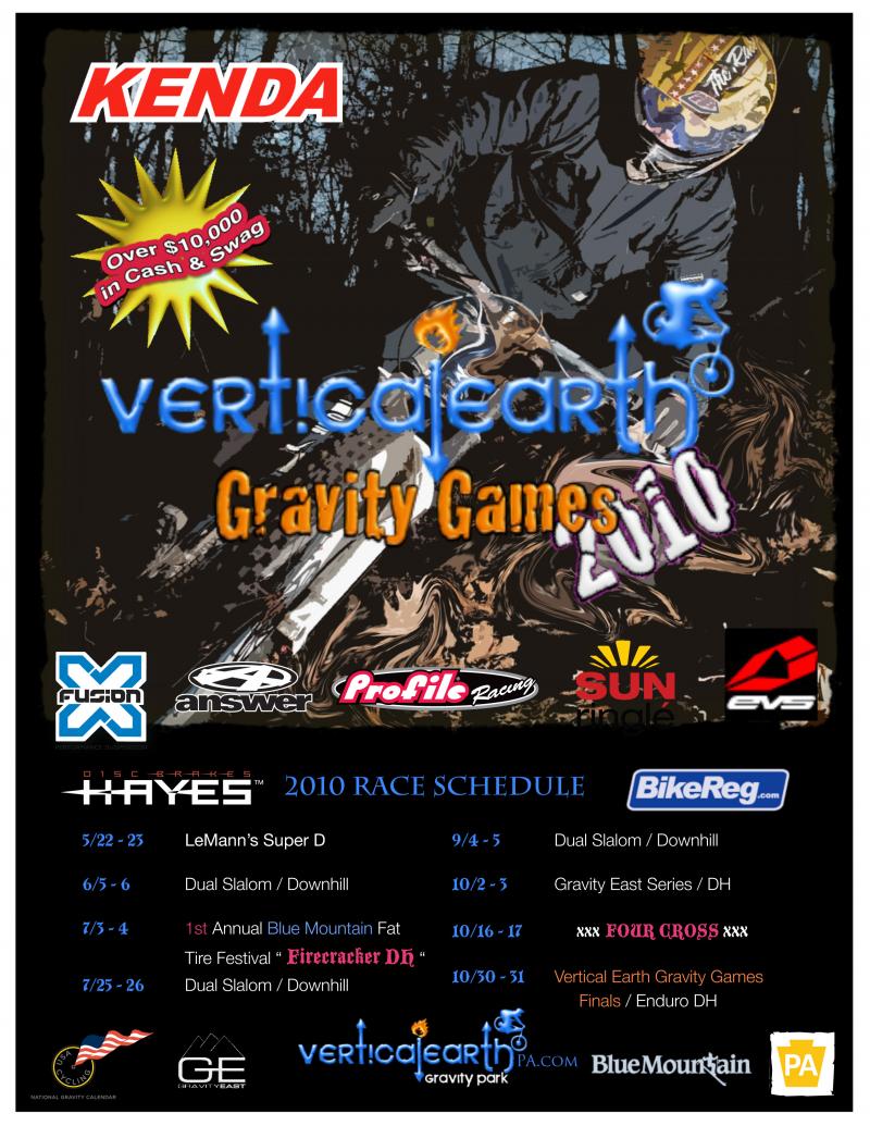 Here's the schedule for 2010. Vertical Earth Gravity Park has put together a serious collection of events featuring Gravity disciplines sanctioned by USAC. The dates have been picked and we are preparing for our first full season of high speed lift service riding & racing for 2010. :beer: